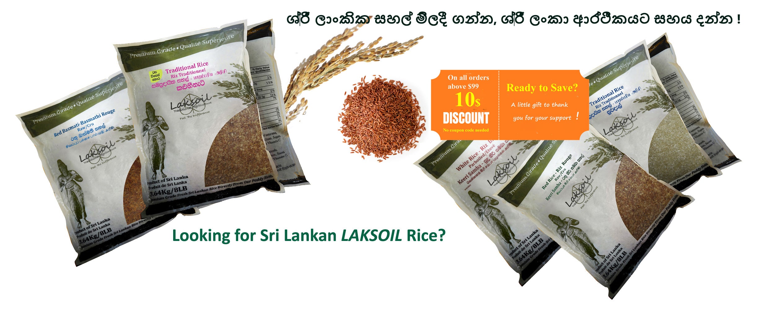LAKSOIL Sri Lankan Red Raw Rice -Single polished 8LB/3.632Kg